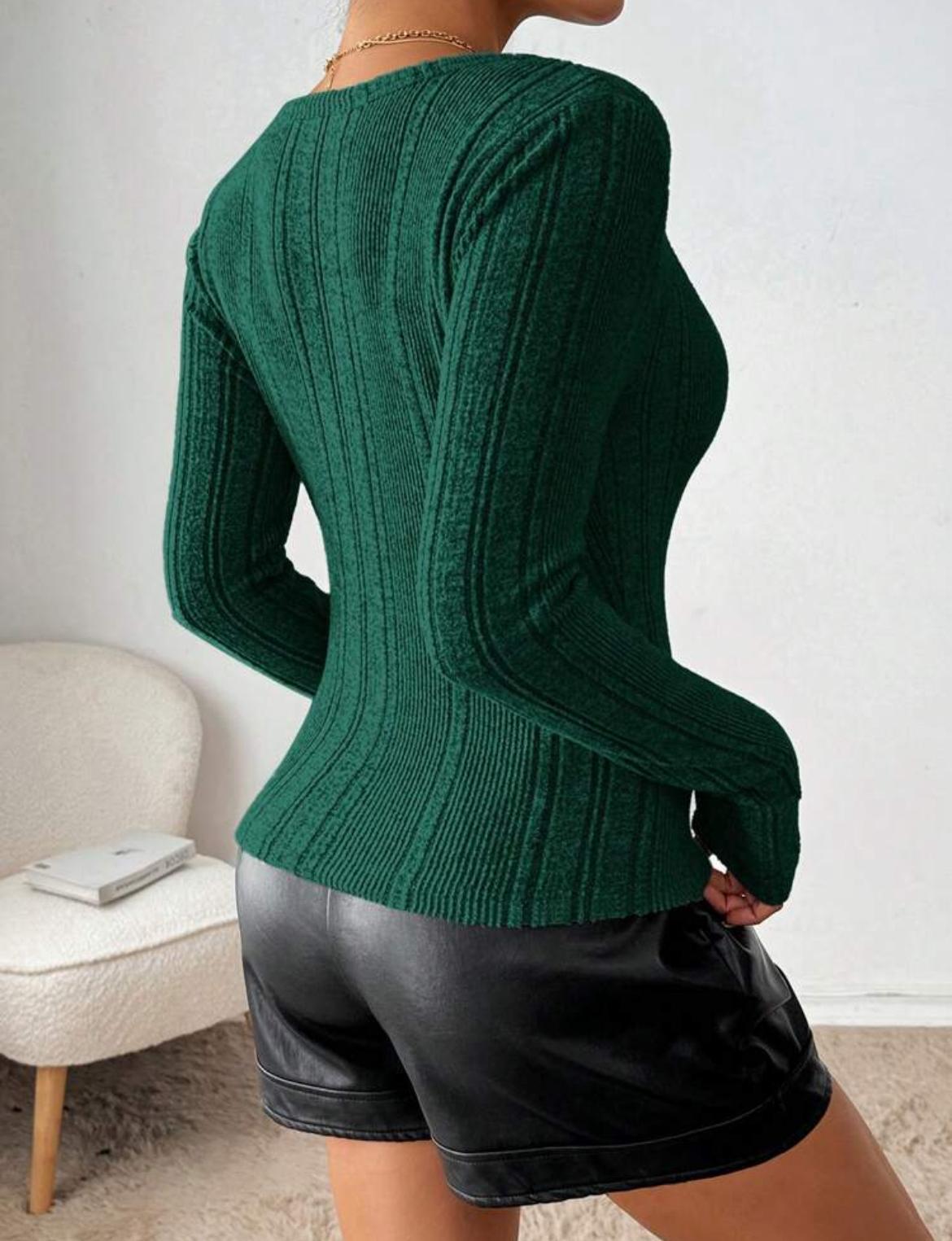 Crew Neck Ribbed Knit Sweater